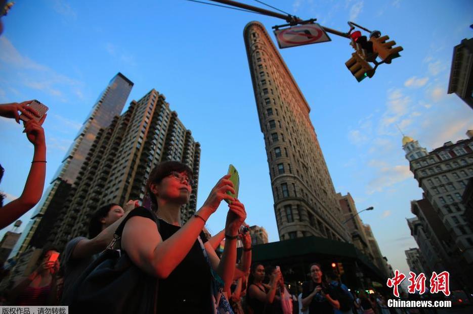 当地时间7月11日,美国纽约曼哈顿再现“曼哈顿悬日”景观,引得路人纷纷围观。据悉,曼哈顿街道大多呈棋盘布局,每年5月底和7月初各有一天日落时分,太阳会精准地落在两排摩天大楼之间,阳光洒满曼哈顿所有东西向街道,形成壮观的“曼哈顿悬日”,时间长达15分钟。