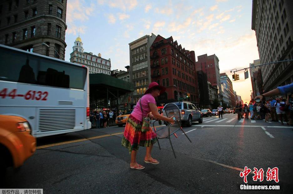 纽约再现“曼哈顿悬日” 引路人围观(组图)