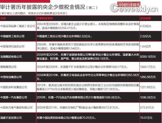 审计署审计长刘家义在《2013年度中央预算执行和其他财政收支的审计工作报告》中指出,审计发现,11户企业2012年收入、利润和资产不实金额分别为73.37亿元、56.67亿元和88.44亿元。