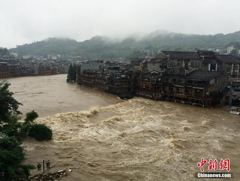 湖南连降暴雨 凤凰古城被淹 全城停电景区关闭(图)
