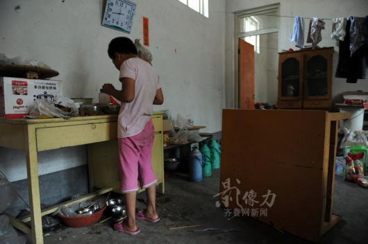 因为“犯病”,婷婷午饭拖到了下午快三点才吃。站到被自己打翻的饭桌旁边,脚下还有散落的饭碗,婷婷似乎丝毫没有意识,开始找东西吃。