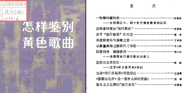 对于民间对邓丽君“没头脑”地热爱,主流音乐专家显得很“不高兴”。《怎样鉴别黄色歌曲》一书就是在这样的背景下出版的。这是一本合集,收录的是当时音乐界的主流专家发表在报刊上的关于音乐鉴赏的文章。