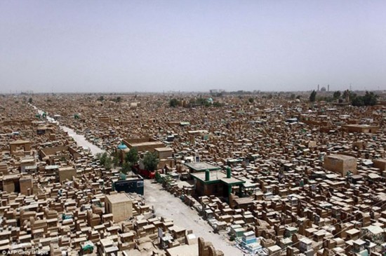 伊拉克境内“一眼看不到边”的墓地。