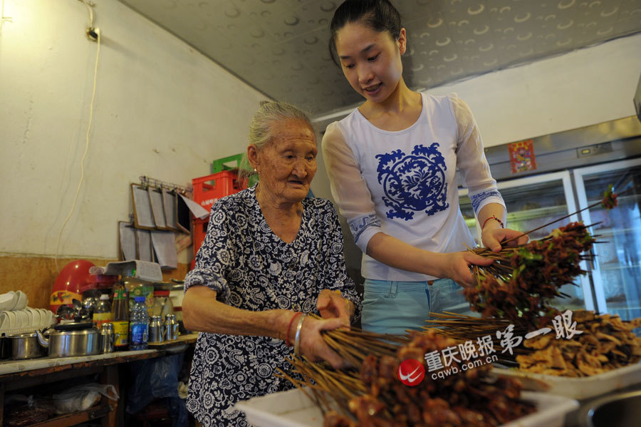 90后女孩带88岁外婆上班 寸步不离(组图)