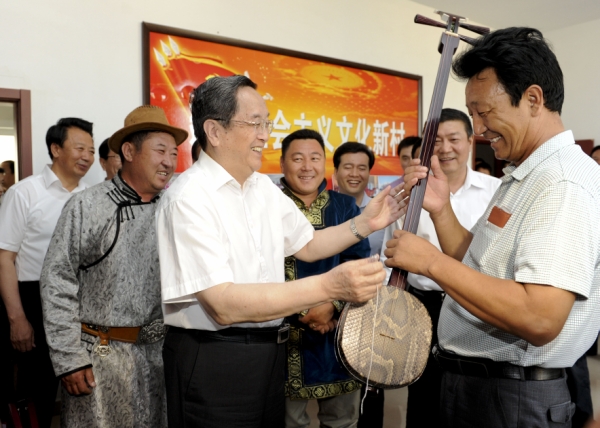 7月18日至21日,中共中央政治局常委、全国政协主席俞正声在内蒙古调研。这是7月19日,俞正声在鄂尔多斯牧民新村村部与牧民代表交流,了解牧区生产生活情况。