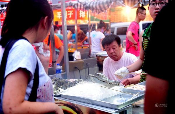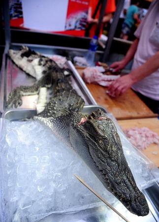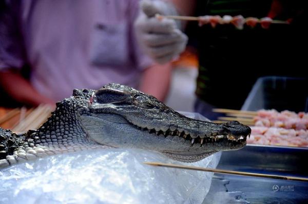 关键词:沈阳现鳄鱼烧烤 现杀现卖 烤鳄鱼肉 20元一串