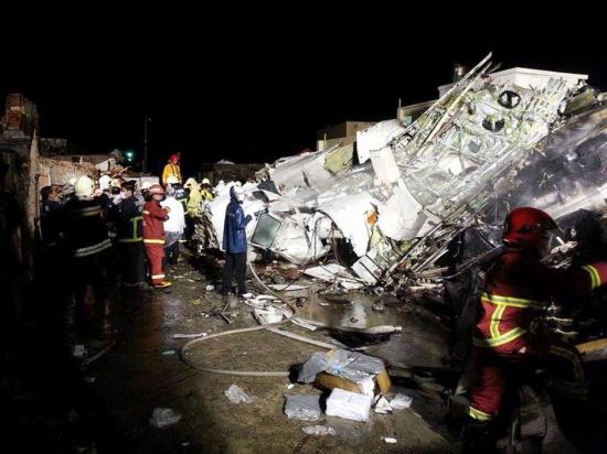 台湾复兴航空一架载有58人的班机23日傍晚降落澎湖时,疑迫降失败坠毁。综合台湾“中央社”与中时电子报报道,复兴航空一班由高雄飞往澎湖马公的GE222航班,晚间7时许重飞失败,机上58人中,47死11伤。而《联合报》引述台湾“民航局”官员传出的讯息,计有4名机组人员及46名乘客死亡,迫降时压到民宅,造成1名乡民及8名乘客重伤送医。图为失事现场一片狼藉,令人怵目惊心。图片来源:中央社