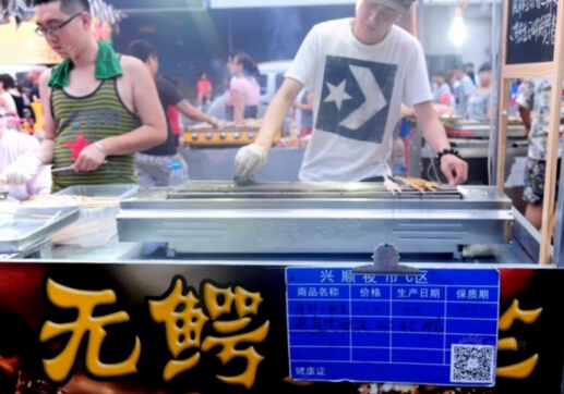 沈阳现鳄鱼烧烤20元1串