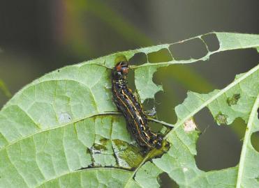 菜地道路爬满毛虫 草叶被啃出一个个小洞