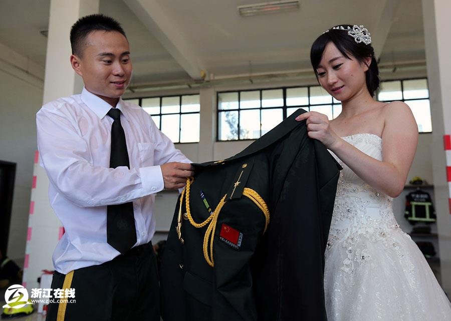 关键词:宁波消防战士拍“特殊婚纱照” 消防战士婚纱照