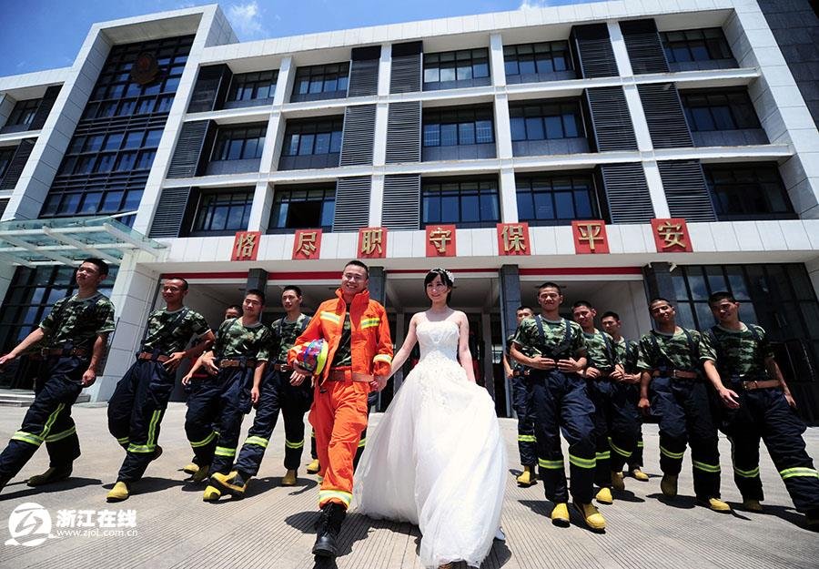 关键词:宁波消防战士拍“特殊婚纱照” 消防战士婚纱照