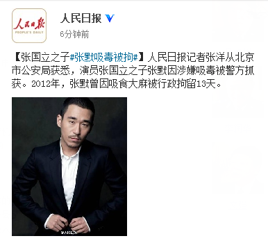 关键词:张默因吸毒被拘 张国立之子张默吸毒被拘