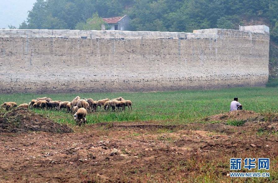 河南旱情持续 水库干涸成牧场