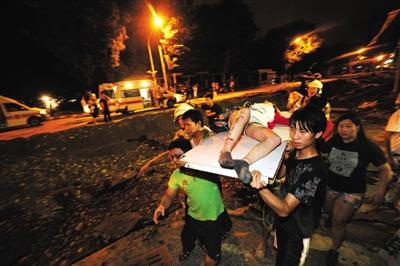 高雄市民将受伤人员从爆炸点抬出。
