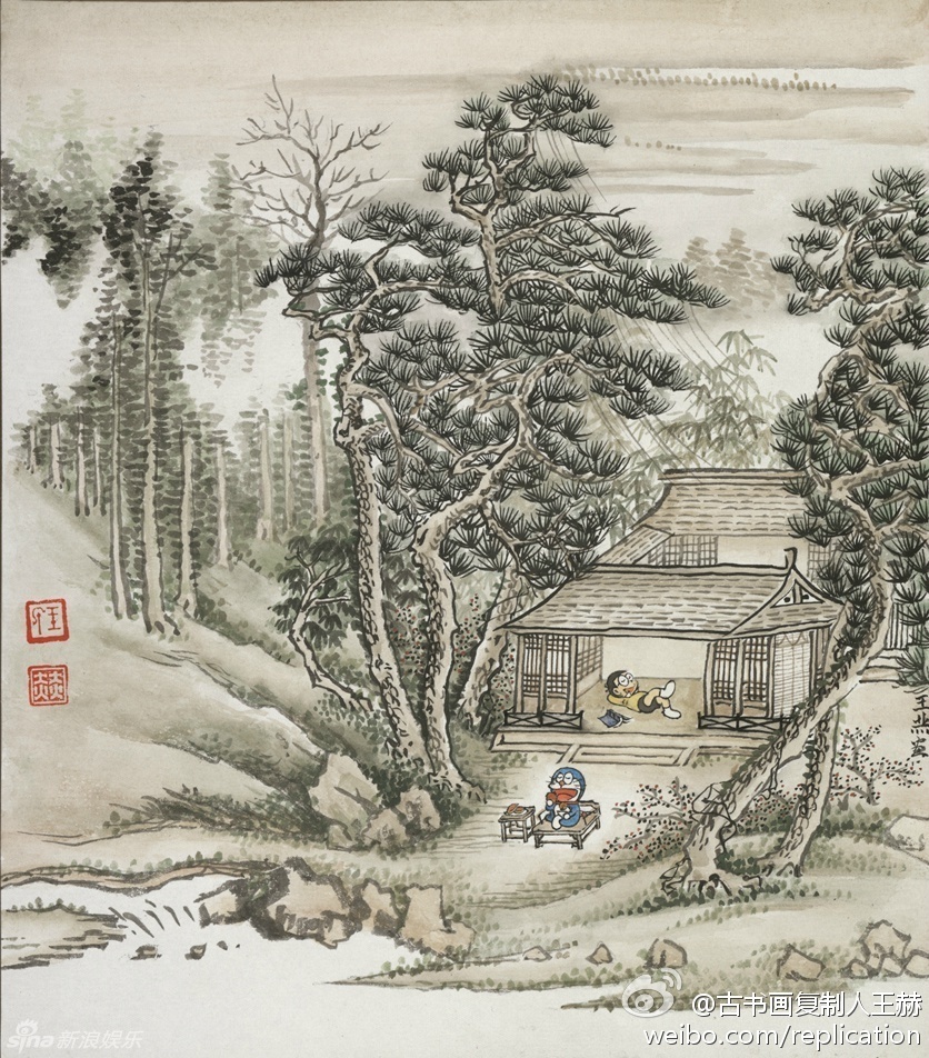 哆啦A梦穿越古代 被画进中国古画 网友:毫无违和感(组图)