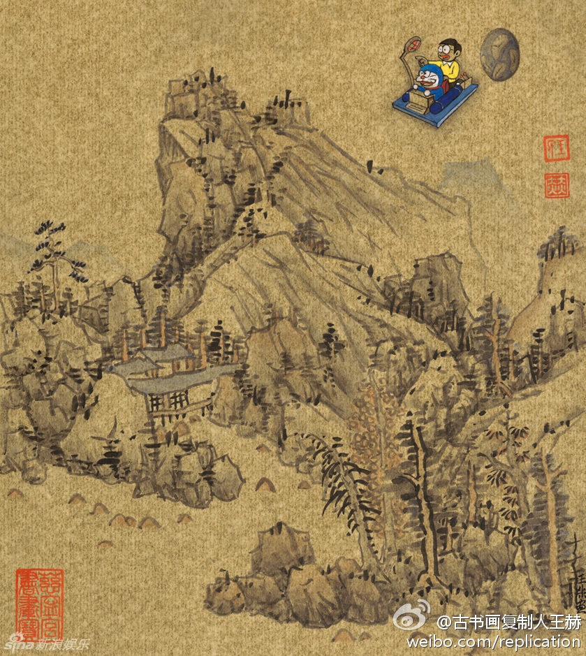 哆啦A梦穿越古代 被画进中国古画 网友:毫无违和感(组图)