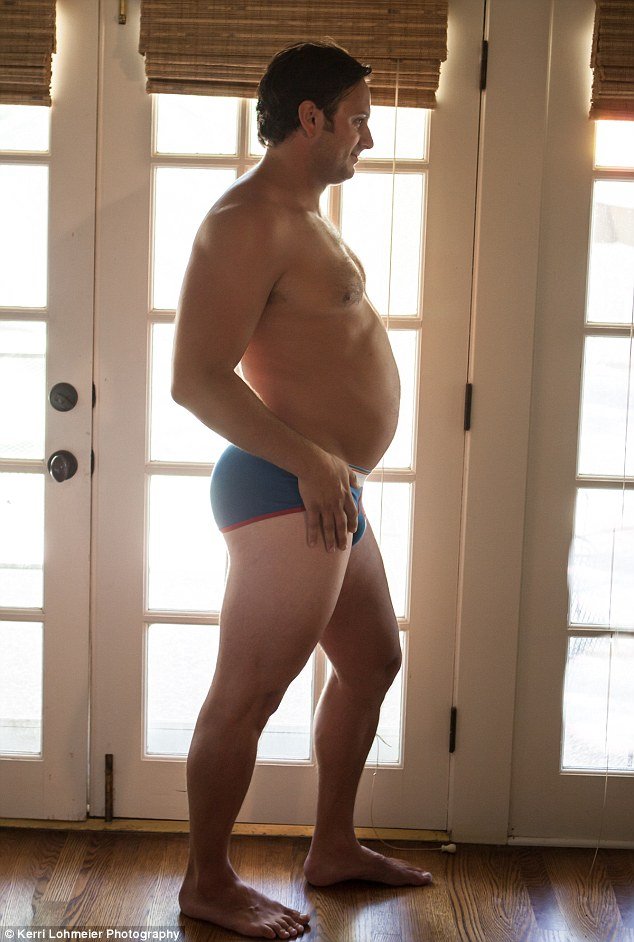 只见这张照片上的他摆出各种姿势,表情温柔慈爱,充满了他即将成为父亲的幸福感。他时而手抚肚皮使肚子看起来更大,时而表现出对冰淇淋渴望而不能吃的无奈,时而又摆出孕照经典姿势“爸爸亲吻宝宝”,不过这次他只能去亲吻自己的肚子了。