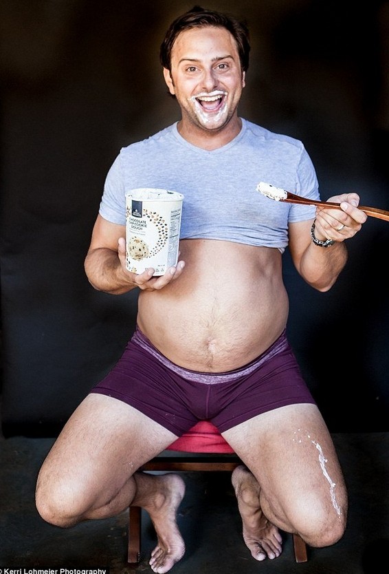 男子挺"啤酒肚"代替妻子拍孕妇照 满脸幸福(组图)
