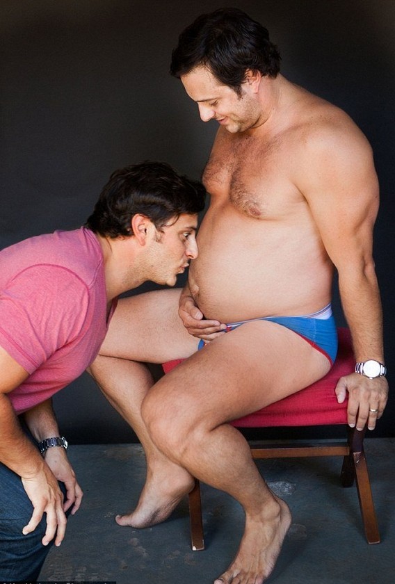 男子挺"啤酒肚"代替妻子拍孕妇照 满脸幸福(组图)