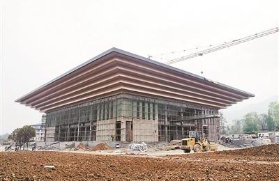 房县县委大院会议中心形似世博园中国馆