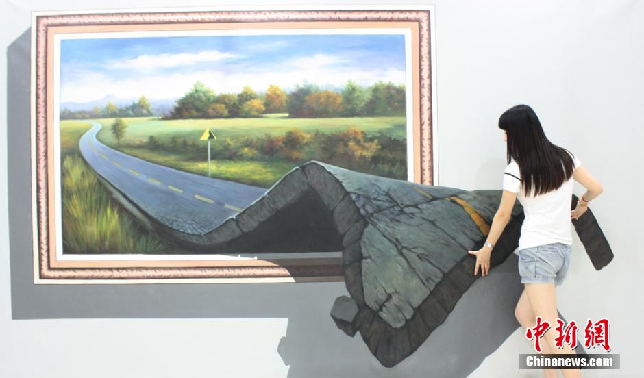 3D立体画亮相江苏盐城 市民“人画互动”体验神奇(组图)