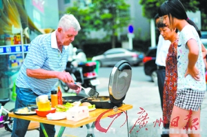 老外常州摆摊卖早点 网友:相信没地沟油(图)