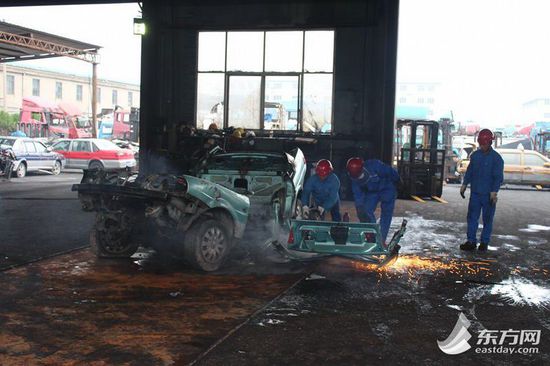 据悉,新规实施一周以来,交通执法部门查获“黑车”186辆,“克隆出租车”25辆,非法招揽案件4件。图为拆解车间内,工人正紧张作业。(郭云摄)