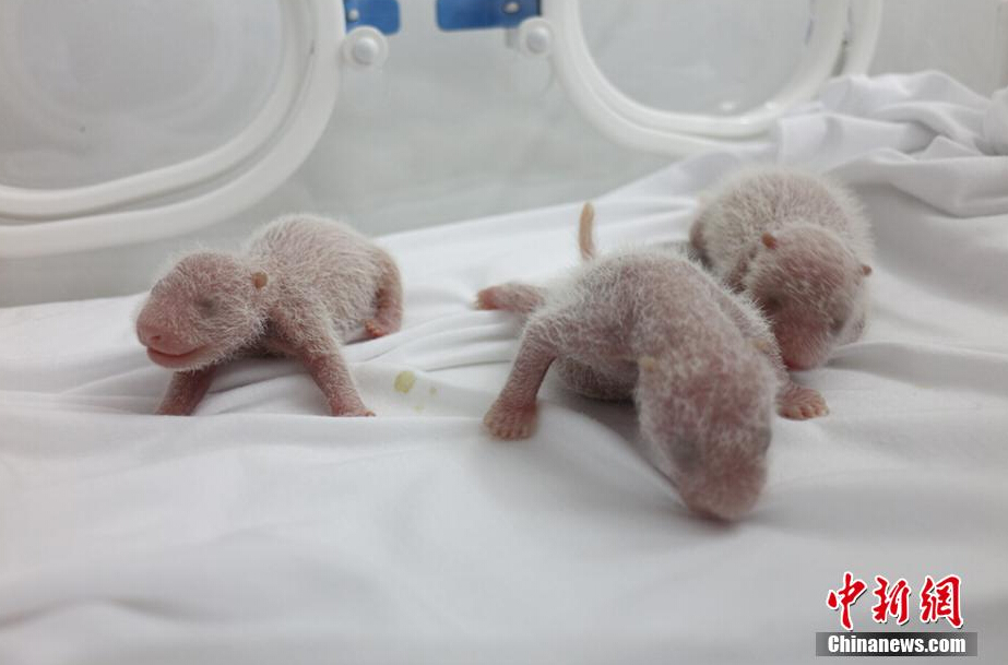 8月12日记者从中国?;ご笮苊ㄑ芯恐行幕裣?,卧龙大熊猫“菊笑”于7月29日凌晨在广州长隆野生动物世界顺利产下三胞胎熊猫宝宝。这是迄今为止中国?;ご笮苊ㄑ芯恐行拇笮苊ǖ诙尾氯ィ彩侨ρ笮苊ㄈ斯し庇飞嫌屑窃氐牡谒母鋈?,目前母子情况基本稳定。记者 安源 大熊猫研究中心供图