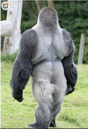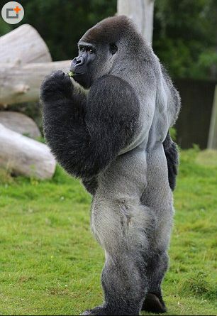 阅读提示:家住在肯特郡林姆尼港野生动物园的大猩猩安巴姆今年已满24周岁,体重220公斤,但却能“人模人样”的直立行走。