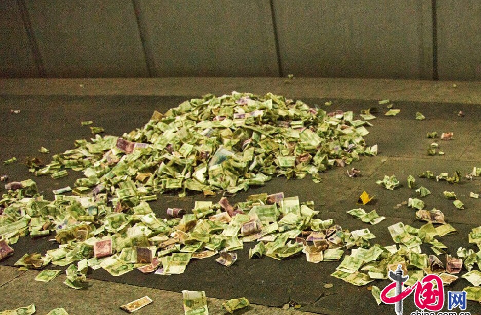 中国网8月15日讯 2014年8月14日,北京昌平区,5A级景区明十三陵定陵地宫内,历史文物上游客祈福所投过去的钱币堆成了小山,没有工作人员制止清理。