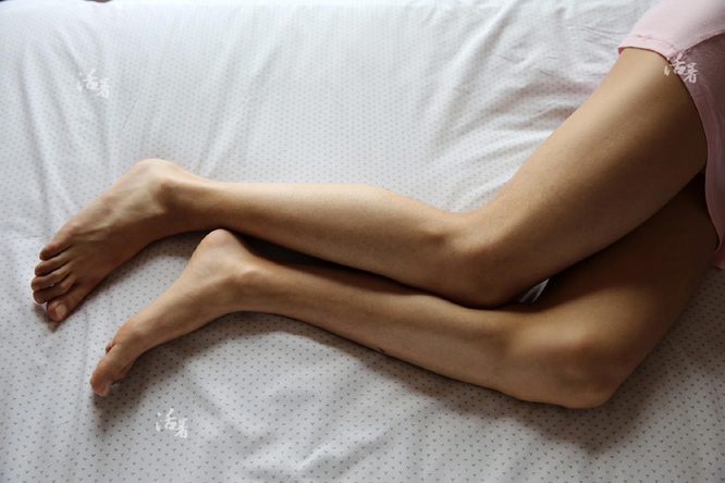 他的双腿很纤细,但腿上的肌肉线条和腿毛,还是出卖了他的性别特征。