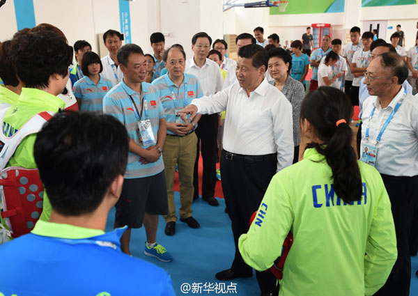 青奥村训练场,习近平对簇拥上来的运动员们说,不要有锦标思想。要放松心态,甩掉包袱,赛出水平,展示风采,让外国朋友看到中华体育精神和中国人民的意志力。更看重你们通过赛事收获的其他宝贵附加意义。
