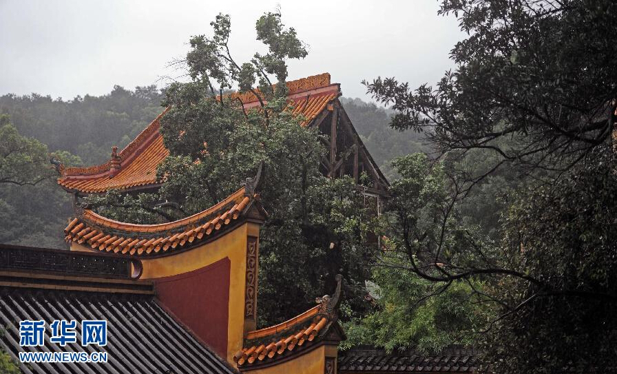 8月18日拍摄的被古树压垮的岳麓书院大成殿的殿顶。当日下午,长沙岳麓书院内一株古树倒向院内建筑大成殿,导致部分殿体垮塌,造成一人死亡两人受伤,其中死者为游客。 新华社记者 李尕 摄