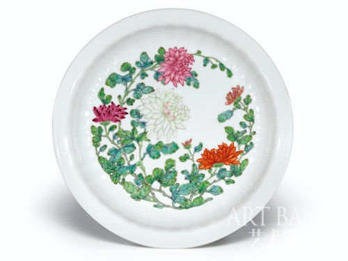 清雍正 粉彩菊花折沿盘 一对(香港苏富比)