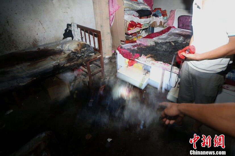 2014年09月01日消息,8月29日,河南开封发生一家四口被杀惨案。嫌疑人行凶后,纵火并逃窜。图片来源:CFP视觉中国