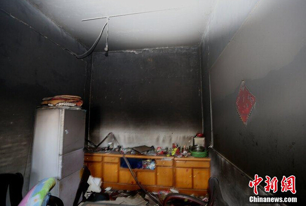 2014年09月01日消息,8月29日,河南开封发生一家四口被杀惨案。嫌疑人行凶后,纵火并逃窜。图片来源:CFP视觉中国