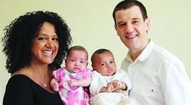 英国夫妇生下黑白双胞胎 概率为百万分之一