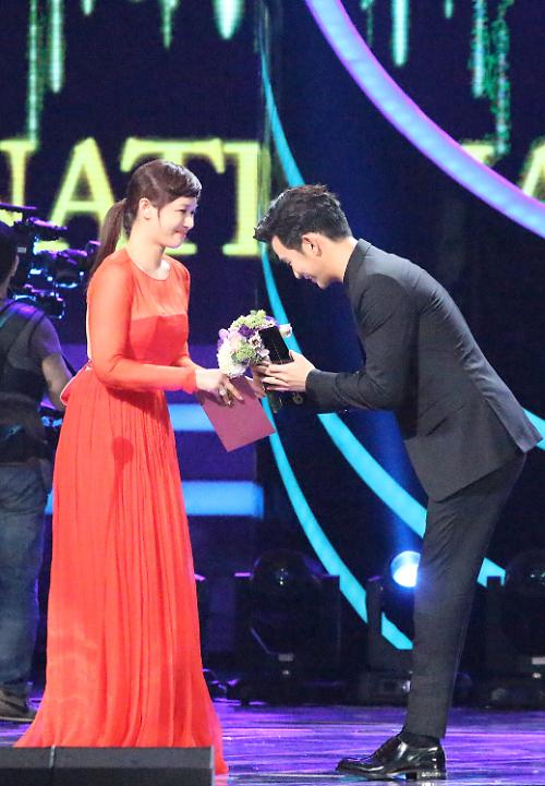 金秀贤接过奖杯 又见90度大鞠躬 摄 葛静怡