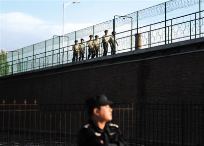 昨日,武警战士在延寿县看守所巡逻执勤。新华社记者 王凯 摄