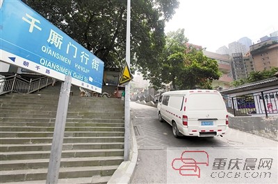 千厮门行街的陡坡经常让过往的车辆熄火。 重庆晨报见习记者 雷键 摄