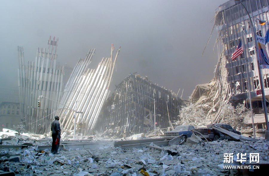 纽约世贸大厦2001年9月11日遭恐怖袭击倒塌后的资料照片。
