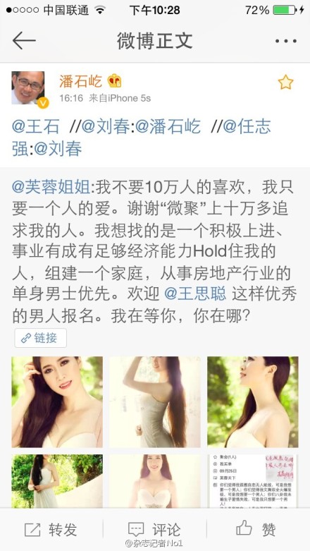 关键词:芙蓉姐姐征婚引大佬围观 芙蓉姐姐征婚 芙蓉姐姐 王思聪 潘石屹