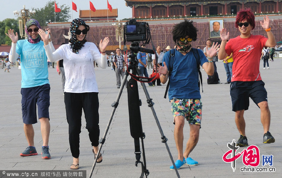 韩国游客天安门广场跳“小苹果” 萌态酷姿夺眼球(组图)