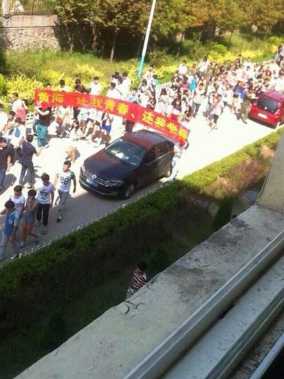 青岛黄海学院,数千学生在校内游行抗议