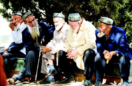 喀什的“主麻日”,做完礼拜的人们,三三两两地坐在艾提尕尔清真寺前的广场上,悠闲地聊着天。