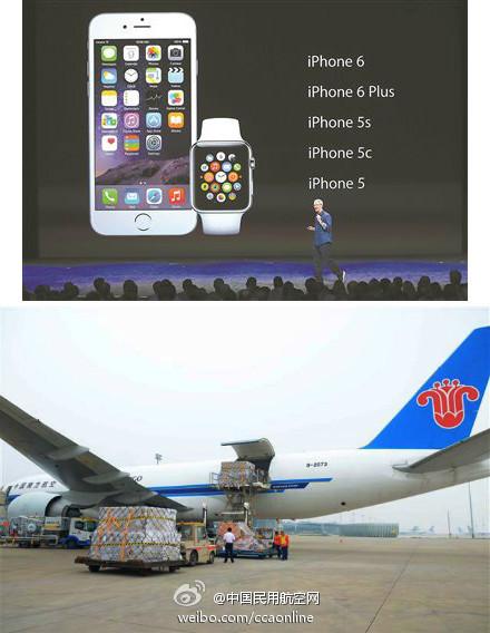9月10日,第一批iPhone 6已经由南航河南分公司使用货机空运至美国芝加哥。据悉,这批iPhone 6的总重量为93吨,保守估计总数量为几十万台。