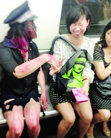 原标题:30名僵尸乘地铁吓坏乘客 网友谴责太惊悚(图)