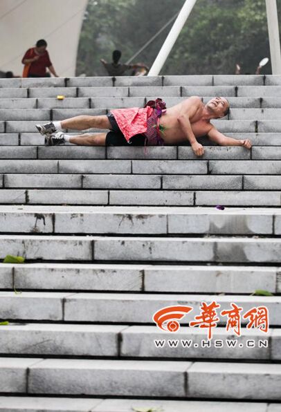 关键词:男子20层台阶滚下滚上 西安晨练 滚台阶 男子滚台阶 滚台阶晨练