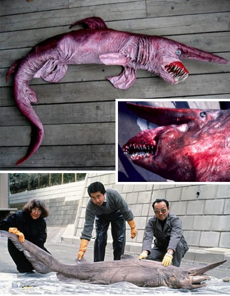 尽管在我们看来深海动物的外形都比较可怕(因为深水压力的影响),但精灵鲨是这些深海动物中外形最为可怕的动物之一。精灵鲨英文名Mitsukurinaowstoni,其皮肤不但极薄,而且因为缺少色素呈半透明状,这使得精灵鲨的鲜红肌肉清晰可见,也是其整体呈现粉红色的主要原因。