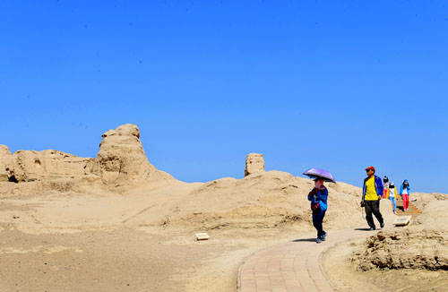 吐鲁番的导游周粉说,以往8月时节,她一天要在高昌故城给八九个旅游团做解说,今年却只有一两个,而且主要是疆内的游客。交河故城文管所副所长安士佳告诉我们,去年他们收入大约有1300万元,今年的收入估计要降一半。“外国游客的数量倒影响不大,主要是国内游客减少。”